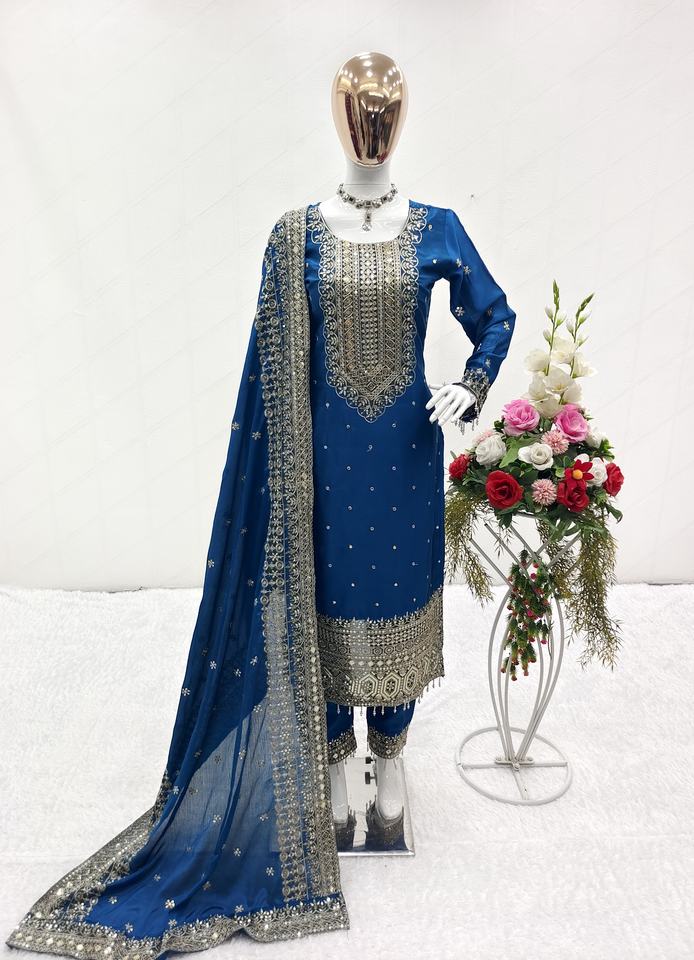 Ensemble Kurti de mariage en soie Chinon pure de haute qualité, avec broderie en fausse fourrure et sequins, par FabZone