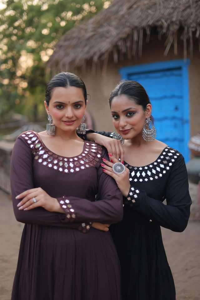 Dernière tenue de créateur Excellente qualité de haute qualité à la demande Look élégant Rayonne cultivée avec un vrai miroir Fabrication de Surat
