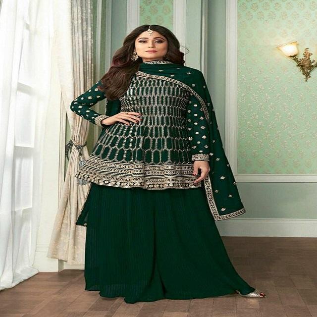 Vêtements ethniques pour adultes en vente Dernier créateur Heavy Real Georgette Salwar Suit & Dupatta avec broderie Work Forte demande