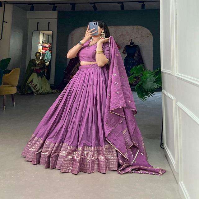 Nom du produit:Dernière Pure Chanderi Plaine Lehenga Choli Avec Dupatta