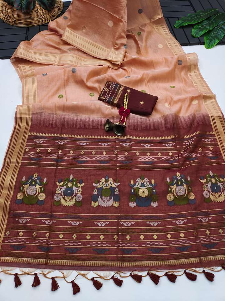Dernier ensemble de créateur Style moderne Premium Soft Muga Cotton Saree Blouse With Weaving Work Femme Fashion Exportateur And Supplier