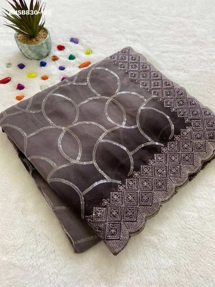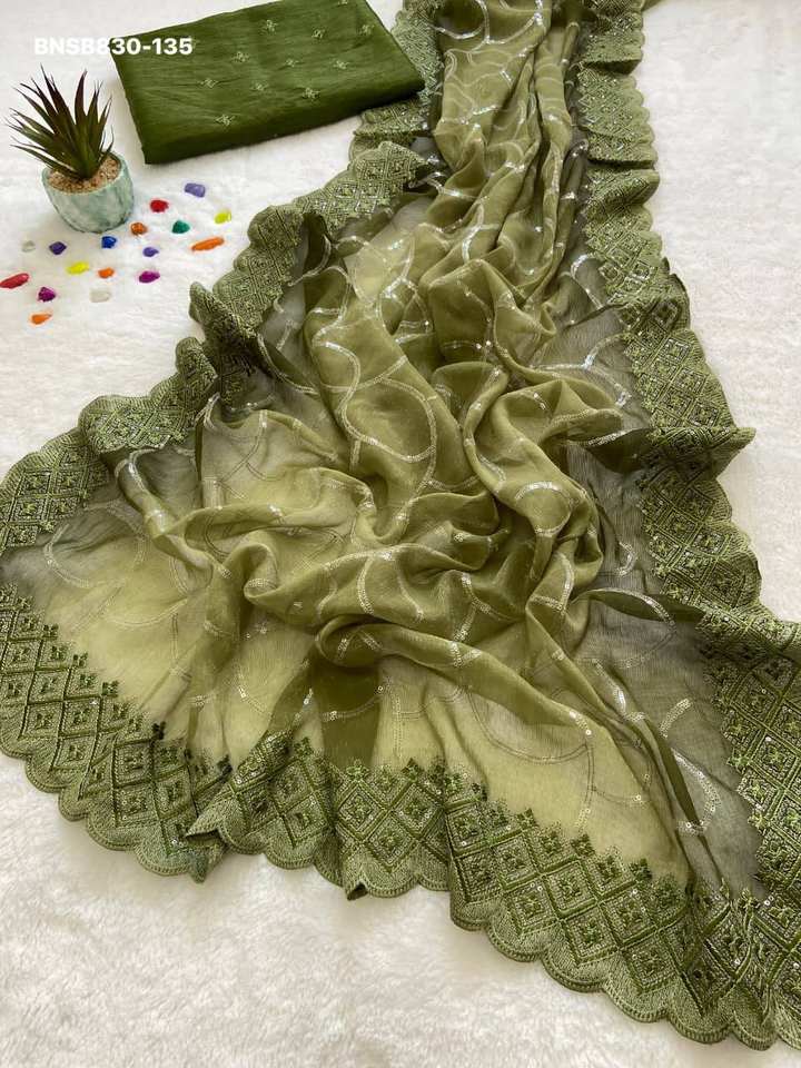 Dernier modèle de sari et ensemble de chemisier de créateur, qualité premium, magnifiquement scintillant, orné de sequins et broderies, exportateur mondial