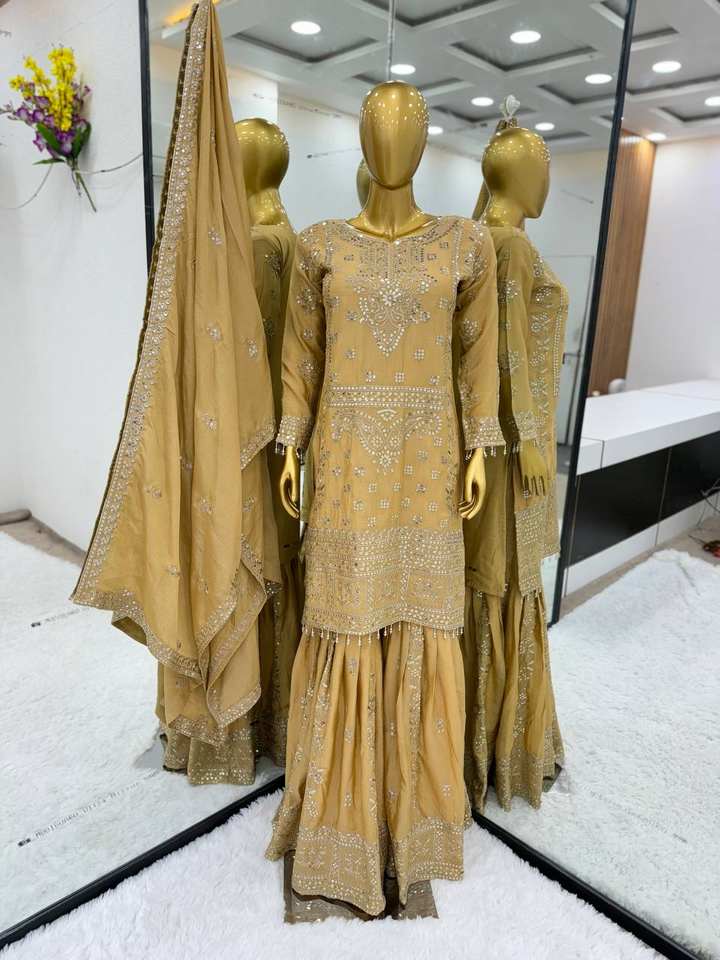 Dernier Designer Pure Chinnon Soie Broderie Séquence Travail Sharara Suit Par FabZone