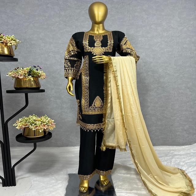 Dernier Designer Pure Chinon Soie Broderie Séquence Travail Kurti Set Par FabZone