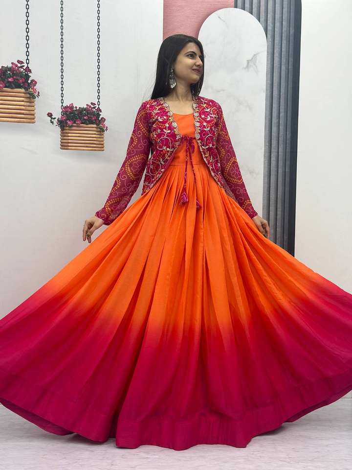 Dernière robe Koti Anarkali brodée en soie pure chinon de créateur par FabZone