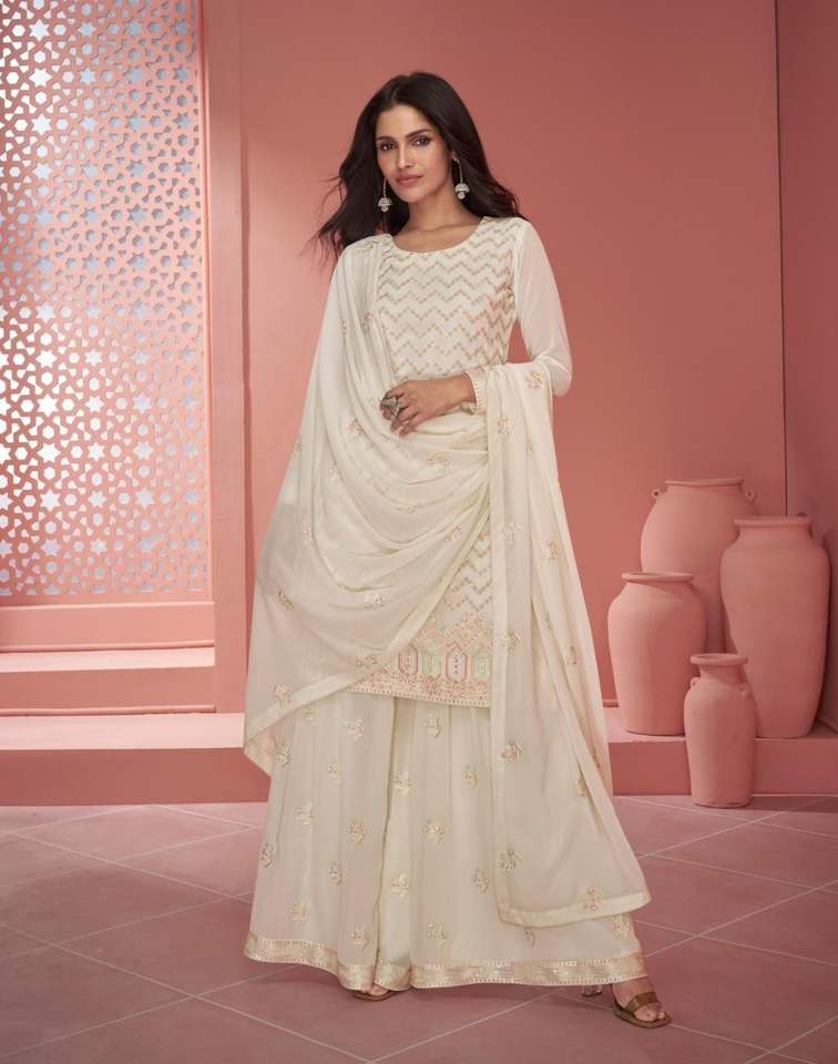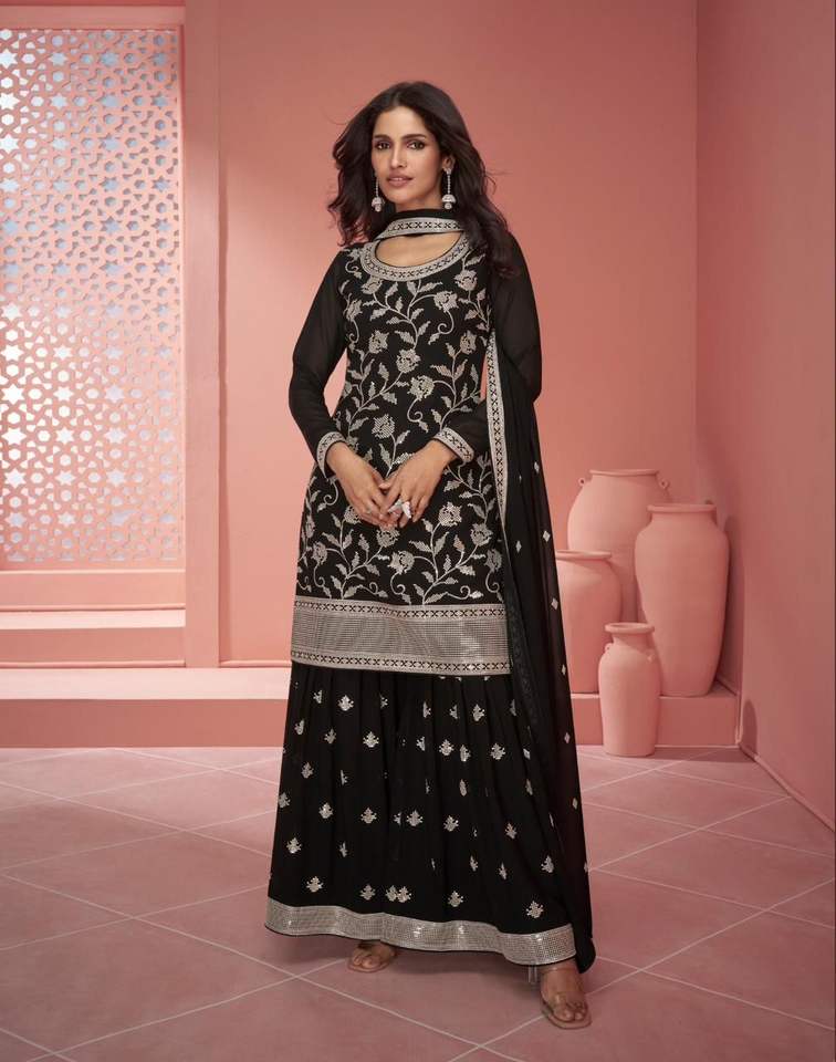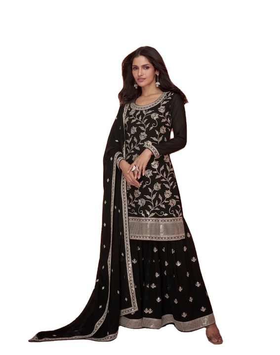 Costume Sharara de travail en fil de Georgette pure de dernier concepteur par Fab Zone