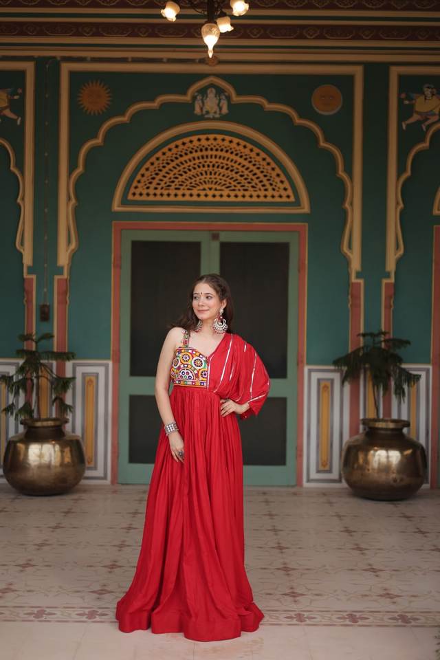 Dernier Designer Pure Rayon Gamthi Patch Woork Anarkali Robe Par FabZone