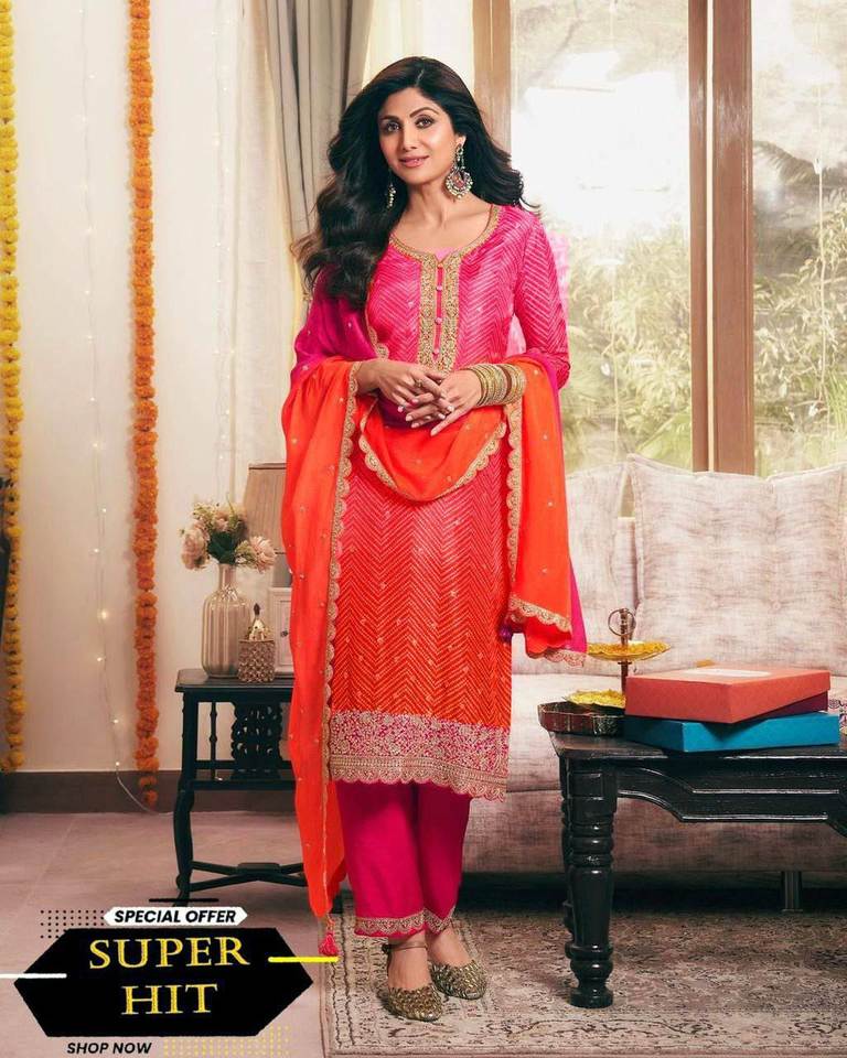 Collection de costumes Salwar de nouveau designer Tissus en soie Chinon avec impression numérique et séquence de broderie pour les femmes Vêtements de festival