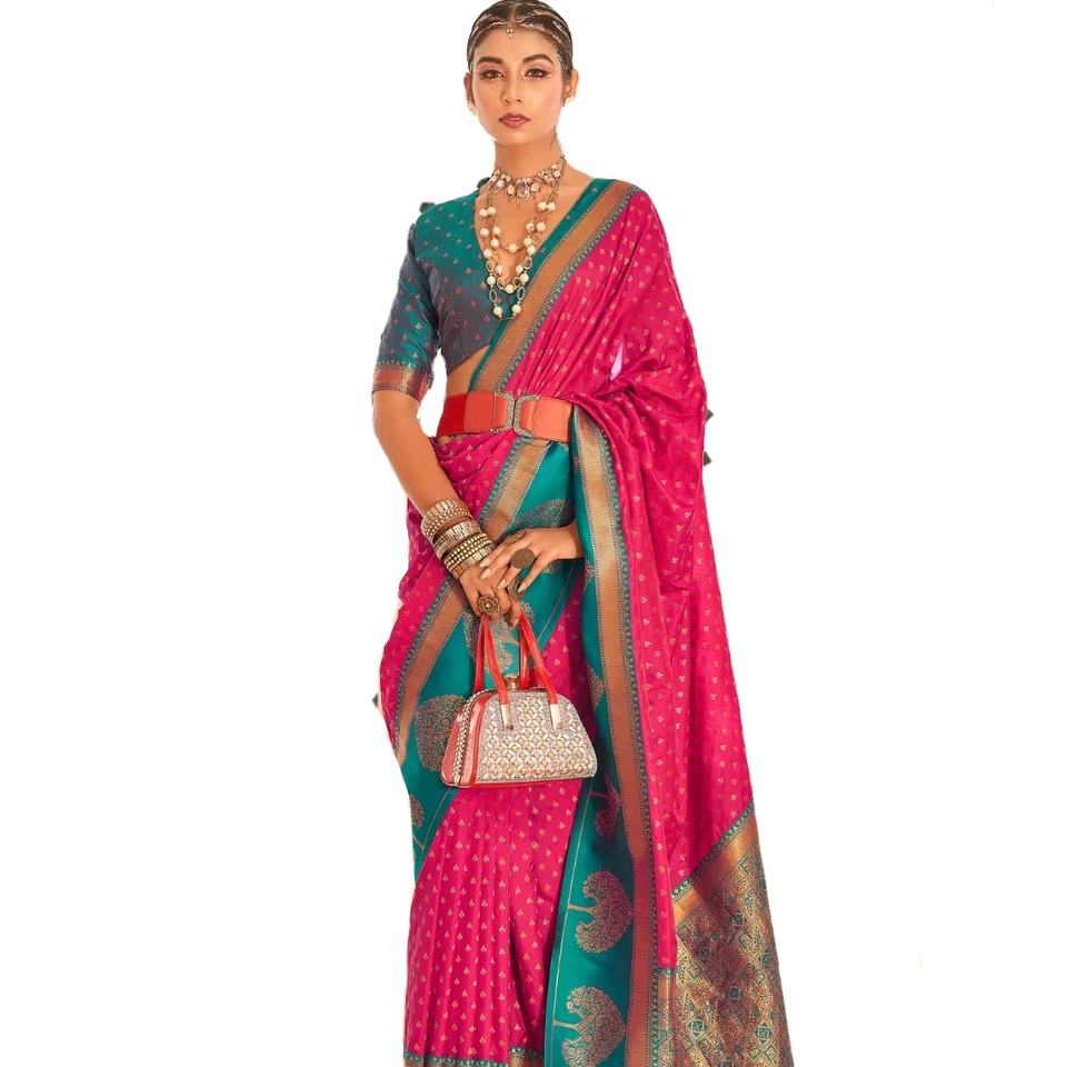 Dernier Designer Doux Banarasi Paithani avec Cuivre Zari Tissage Frontière Saree Par Fab Zone