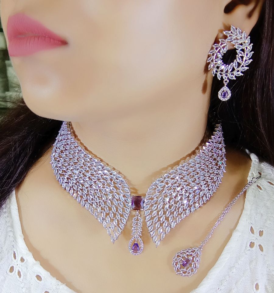 Ensemble de collier en diamant américain de dernière génération avec boucles d'oreilles et bijoux de luxe de qualité supérieure Maang Tikka