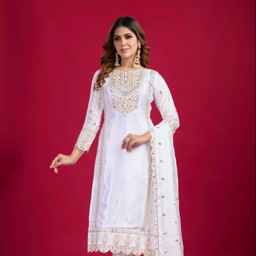 Nom du produit:Chinon Soie Cording Séquence & Miroir Travail Haut & Bas Dupatta