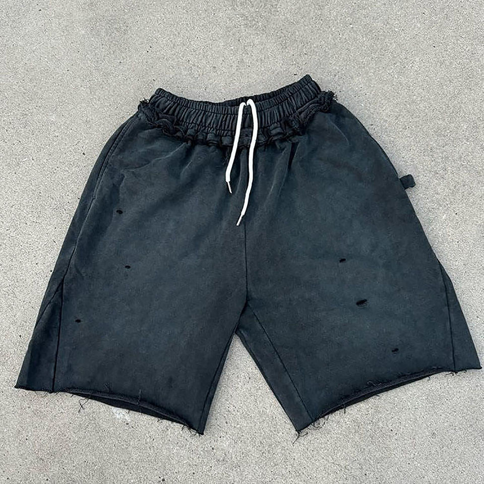 Derniers modèles de shorts de sport MEN ACID WASH 100% coton de haute qualité teints en couleur unie avec strass et motifs solides à séchage rapide