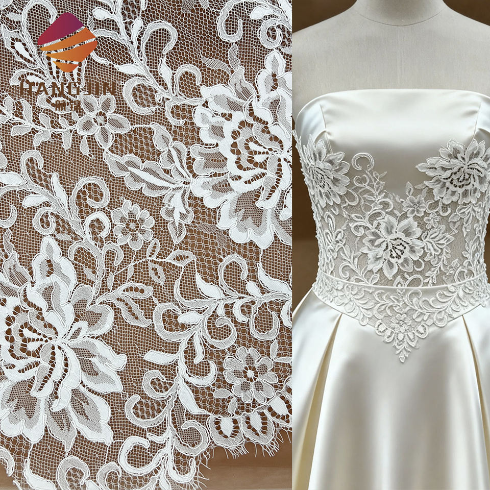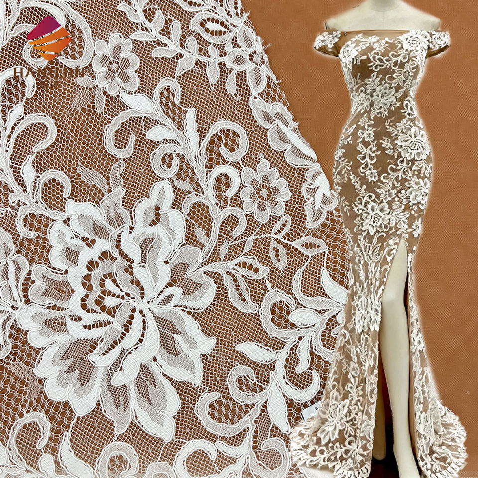 Derniers modèles Prix de gros Broderie 3D Dentelle française Chantilly Tissu de dentelle de haute qualité pour robe de mariée