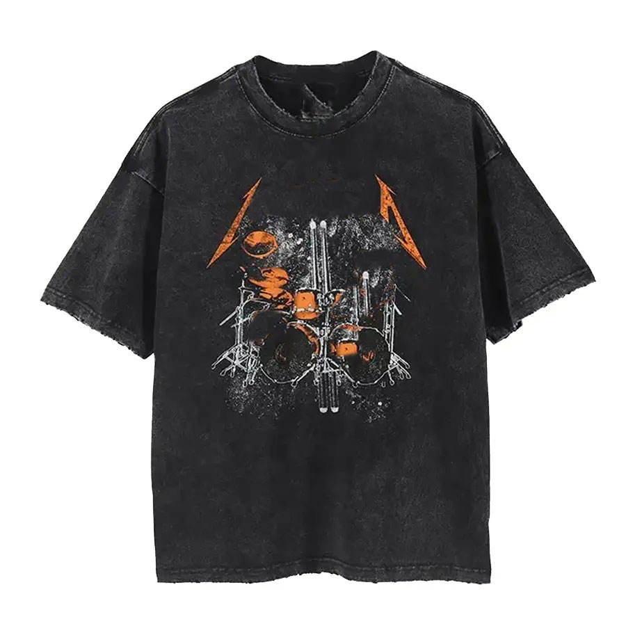 Derniers t-shirts vintage délavés à la pierre pour hommes surdimensionnés à épaules tombantes T-shirt sérigraphié pour hommes