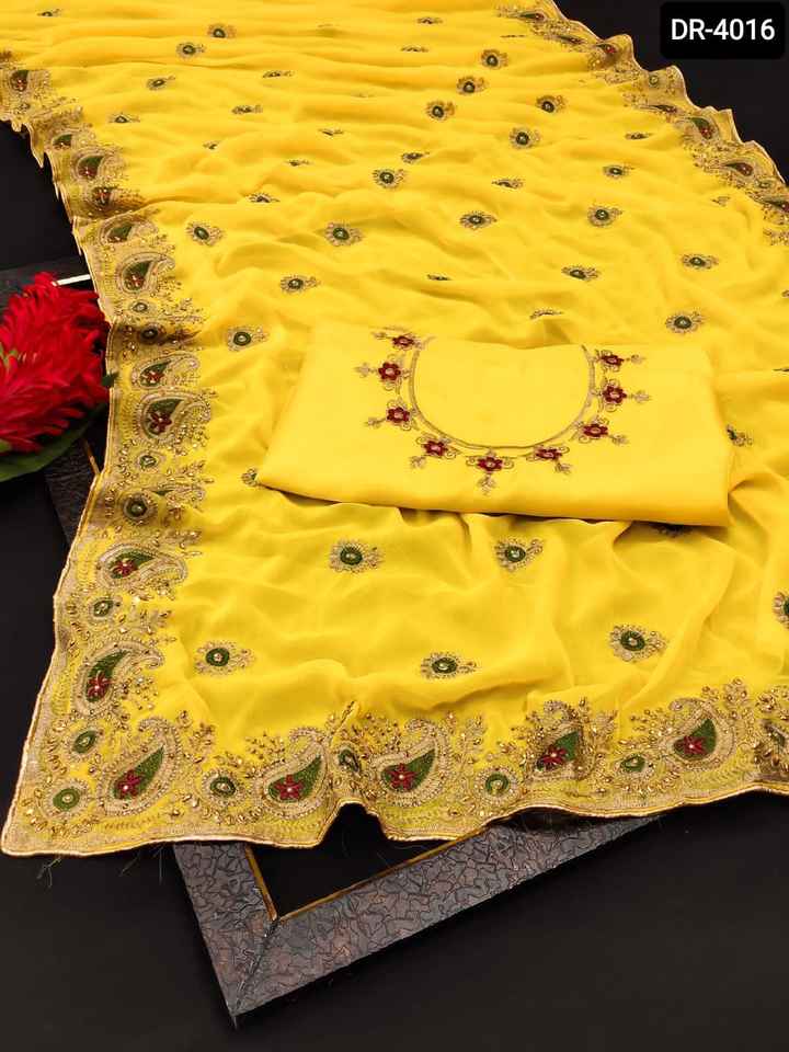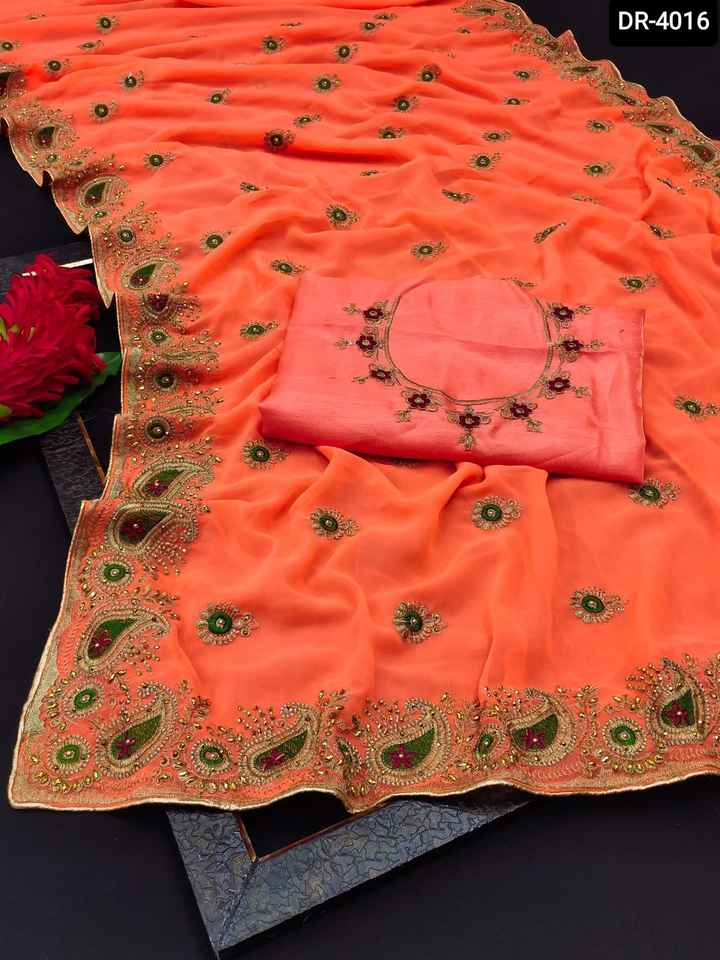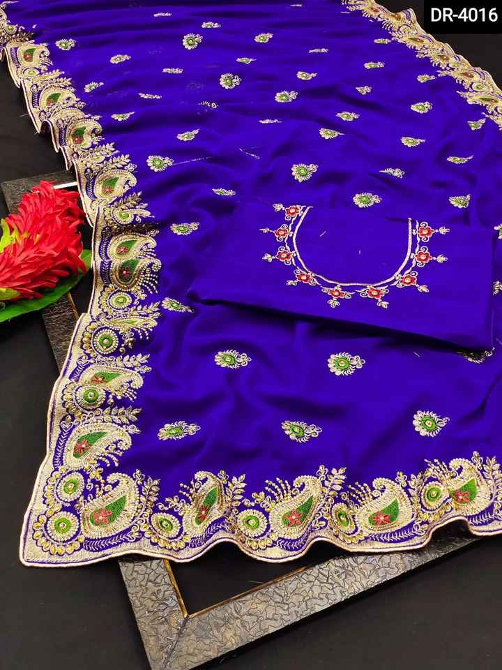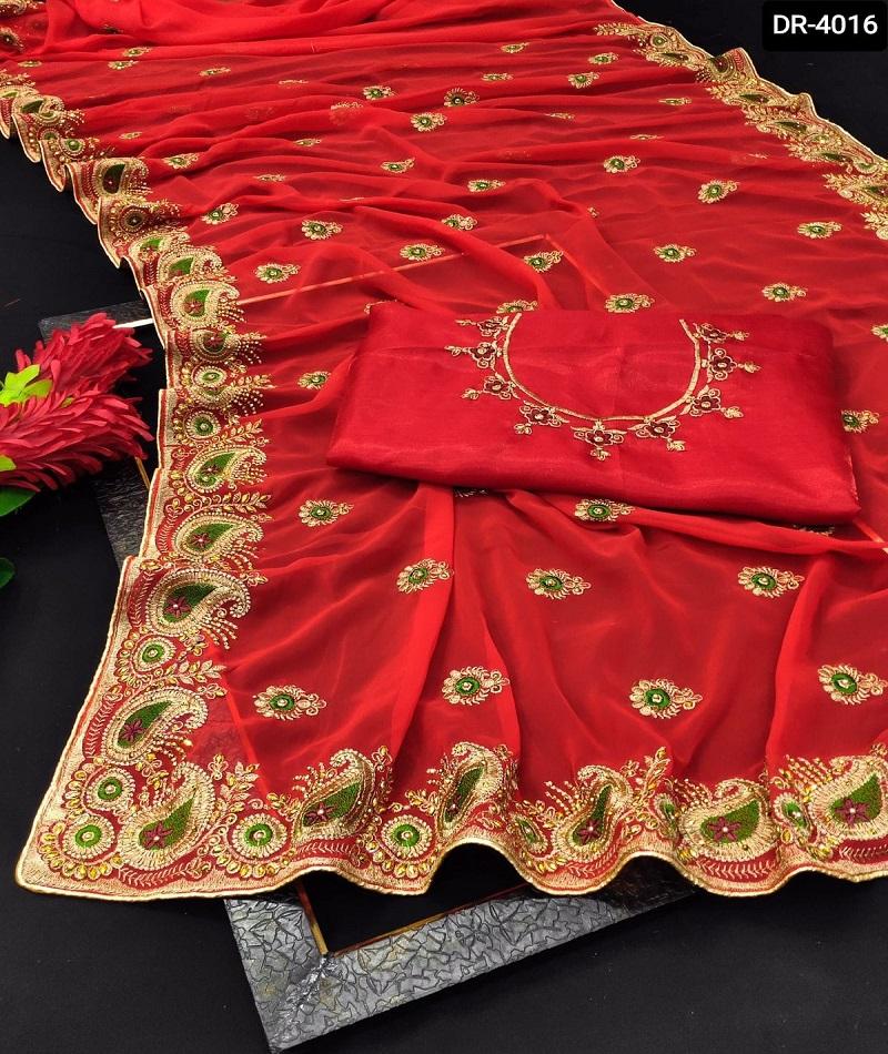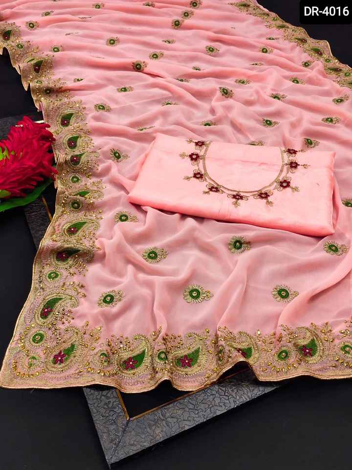 Vêtements ethniques broderie Double Zari travail diamant et bordure de passepoil des deux côtés Georgette Sari avec chemisier en soie Banglory dernière collection