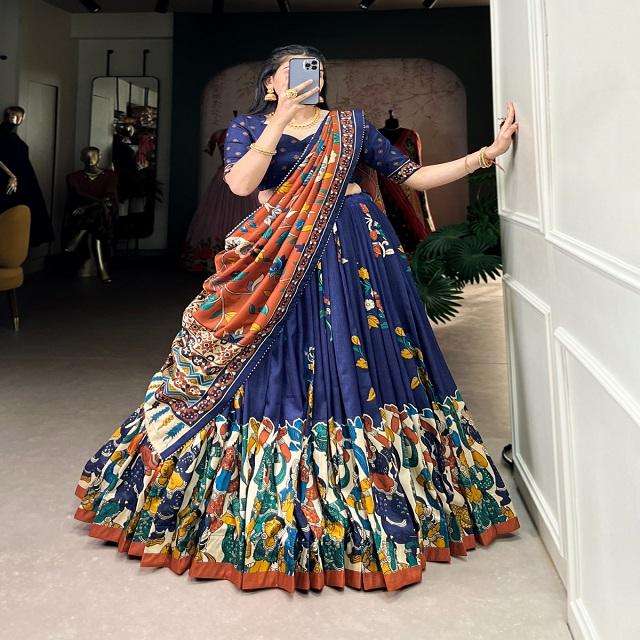 Dernière tenue de créateur Evergreen High On Demand Tussar Silk Lehenga Choli & Dupatta With Kalamkari And Foil Work Woman Fashion