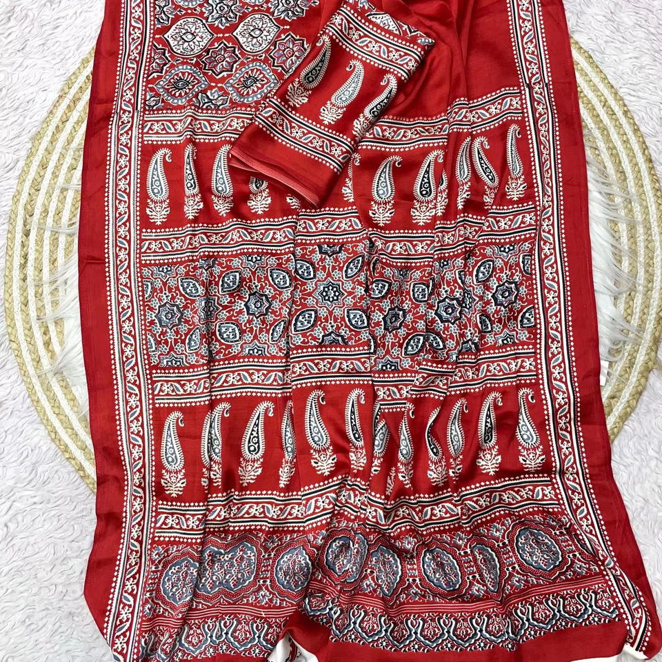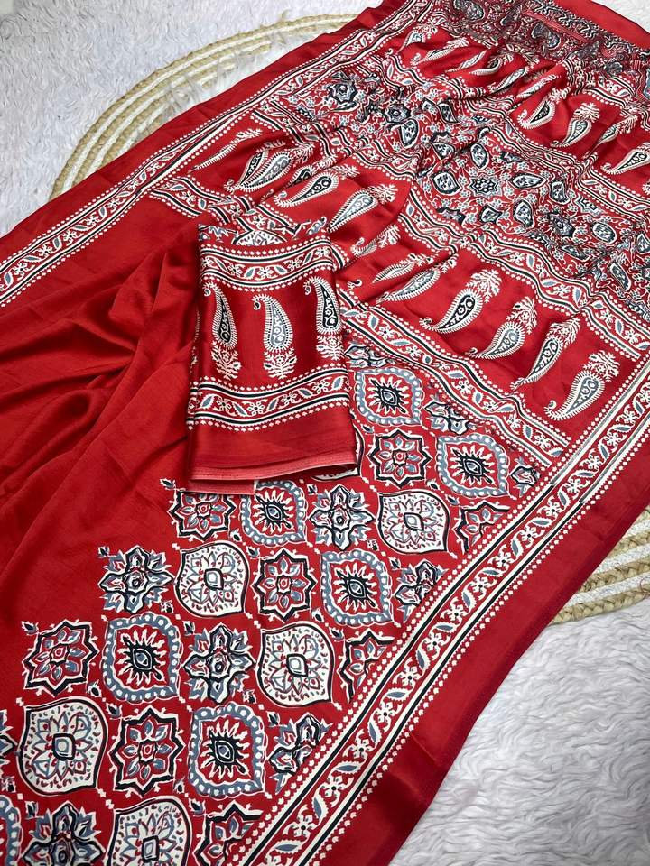 Dernier Saree exclusif de créateur imprimé en satin crêpe avec chemisier fantaisie Mariage classique de style bollywood Événements spéciaux Porter des femmes