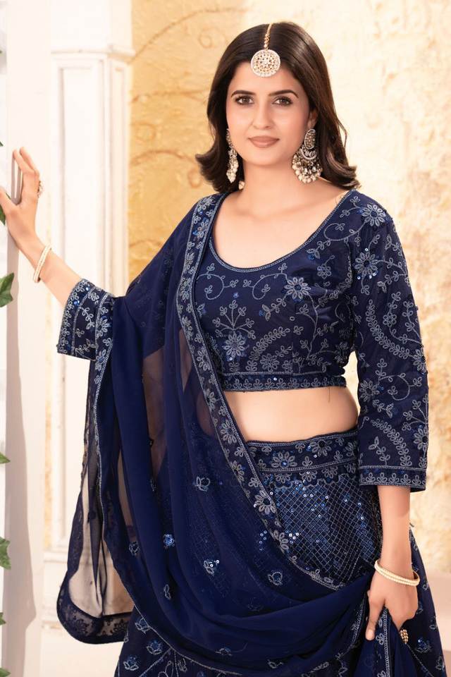 Nouvelle collection FATEMA FASHION : Lehenga Choli en pure georgette, richement brodé, magnifique travail de broderie, en soie lourde, idéal pour les fêtes et festivals.