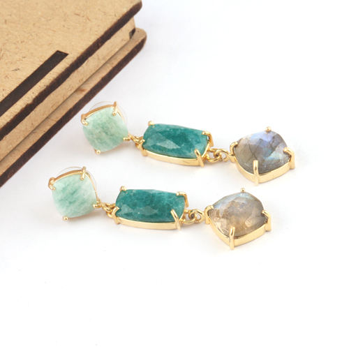 If you — boucle d'oreille briolite naturelle, amazonite naturelle, émeraude et bleu, labradorite goutte, plaqué or 24k
