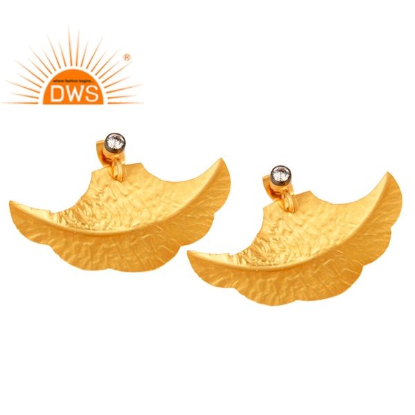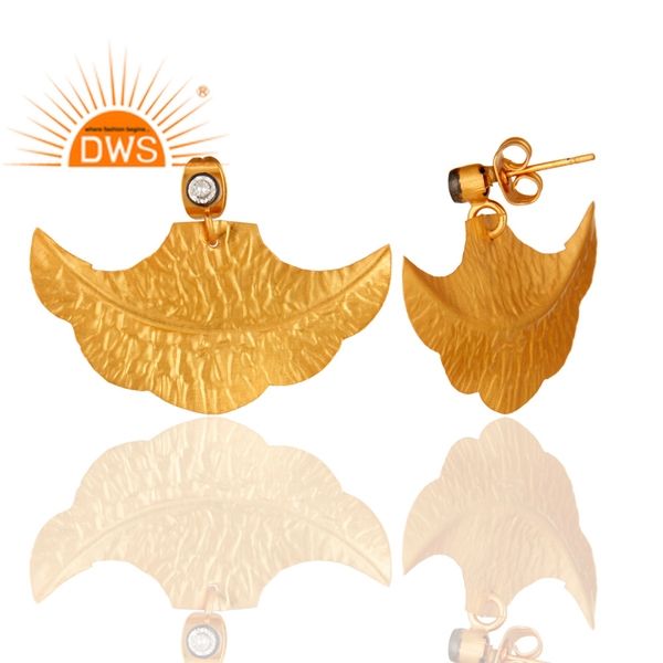 Dernière conception à la mode 18K plaqué or naturel Cz pierre précieuse feuille conception boucle d'oreille Demi bijoux fins pour les femmes cadeau pour elle