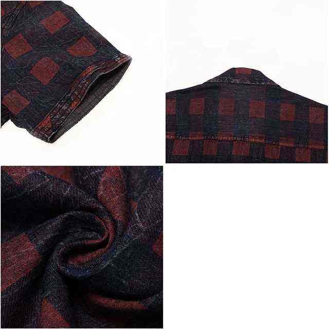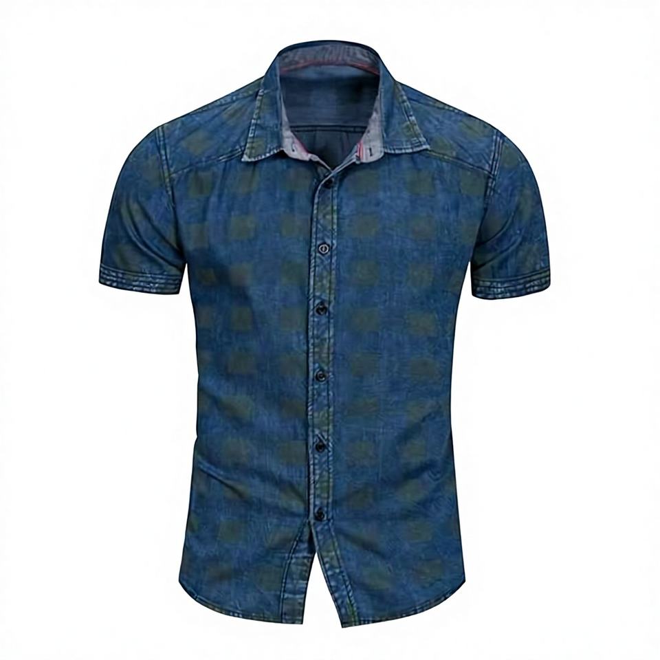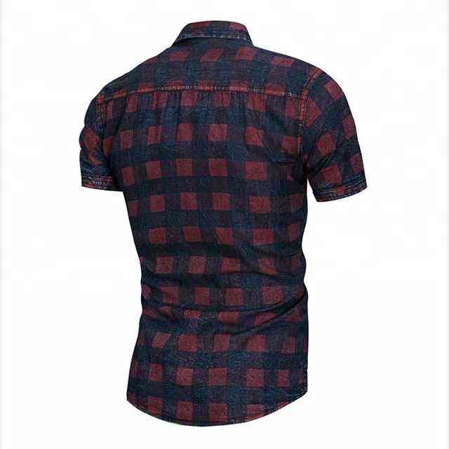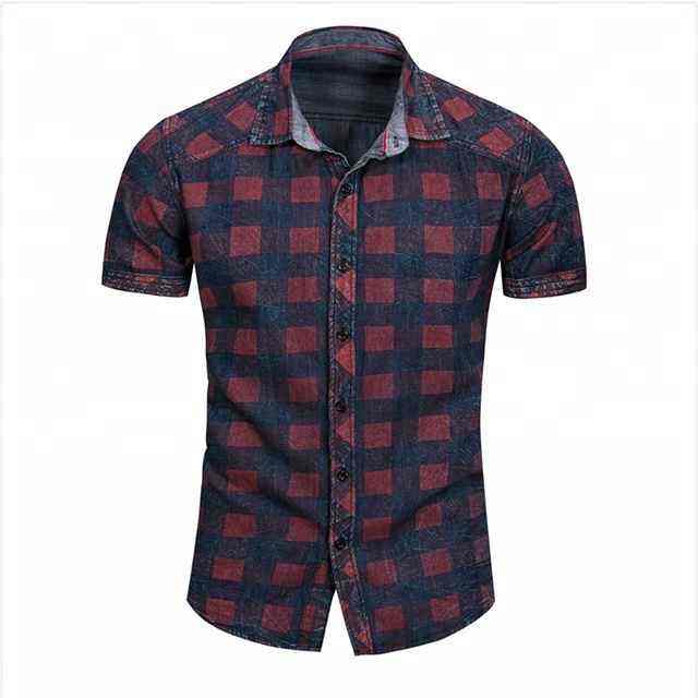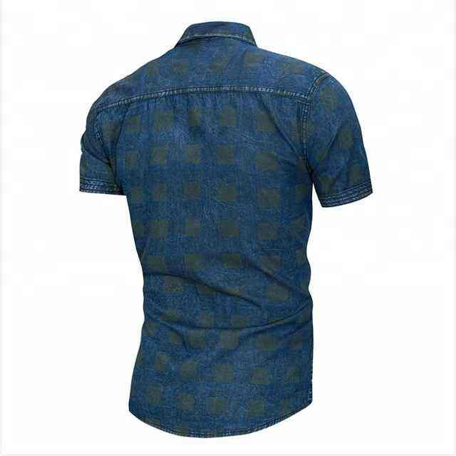 T-shirt d'été pour homme, dernier cri, élégant, formel, en denim à carreaux, fermeture boutonnée, haute qualité, respirant, écologique