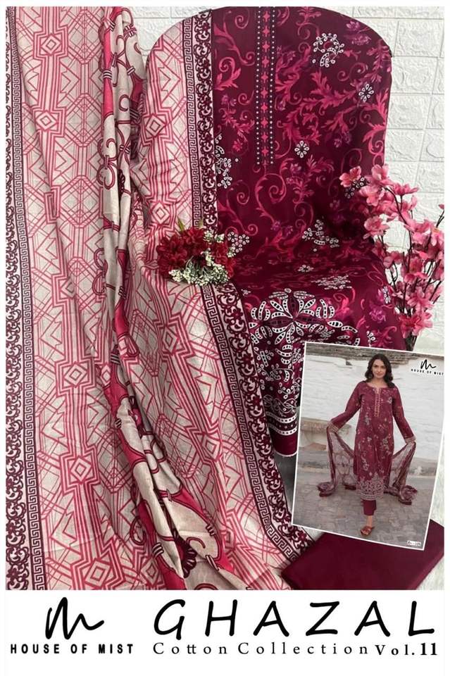 Dernière collection Ghazal Cotton 11 Pure Cotton Top Bottom et Dupatta Parfait pour les rassemblements traditionnels