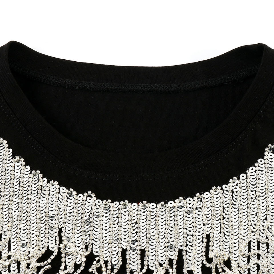 T-shirt femme en strass de bonne qualité, dernier modèle, avec logo personnalisé, prix abordable, t-shirt uni en strass pour femme