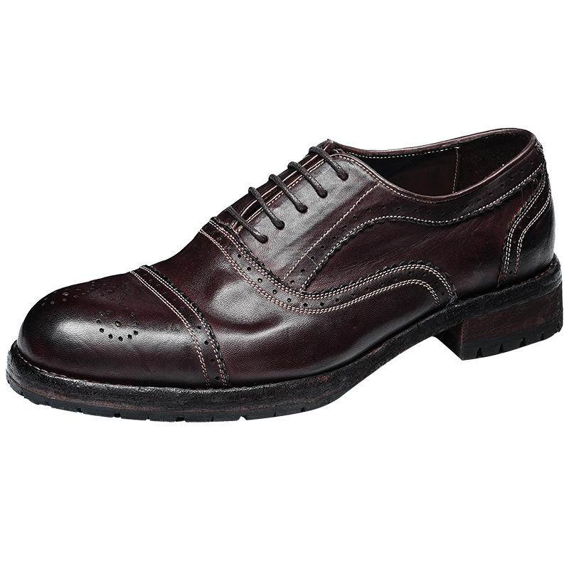 Nouvelles Chaussures Oxford Décontractées pour Hommes en Cuir Pleine Fleur Goodyear Welted, Style Vintage Lavé, Semelle en Caoutchouc Imperméable, Collection Automne