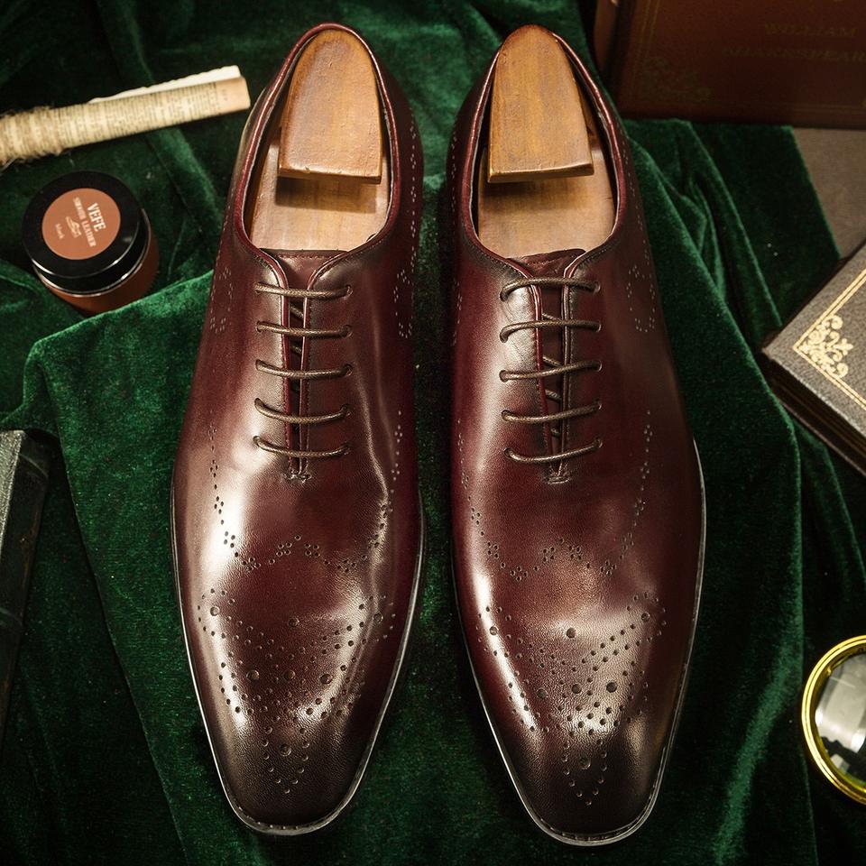 Chaussures habillées pour hommes en cuir véritable, modernes, faites à la main, à lacets, imperméables, pour les fêtes formelles d'automne, les mariages, les occasions professionnelles