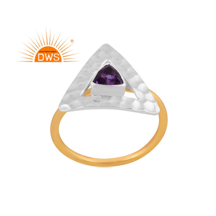 Dernière conception faite à la main 18K plaqué or naturel améthyste pierre précieuse triangulaire empilable bague fabricant de bijoux personnalisés
