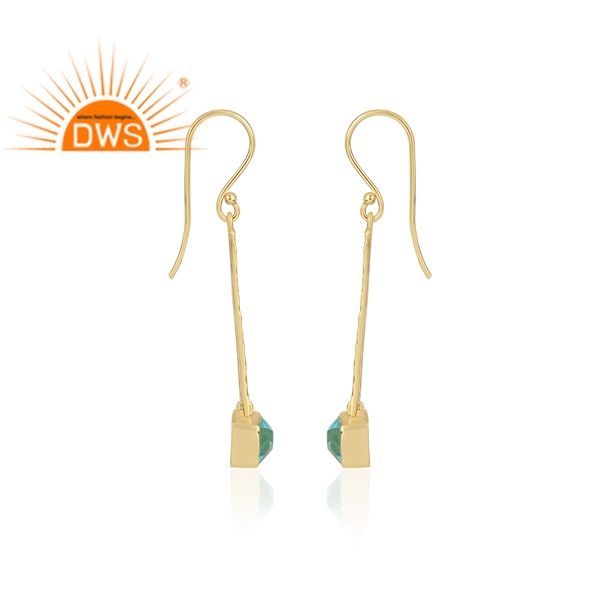 Dernière conception faite à la main 18K plaqué or Hydro Blue Topaz boucle d'oreille fabricant de bijoux de mode