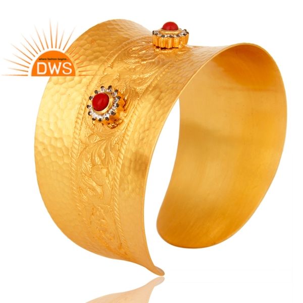 Dernière conception faite à la main plaqué or naturel CZ pierre précieuse classique manchette bracelet Demi bijoux fins cadeau et fête