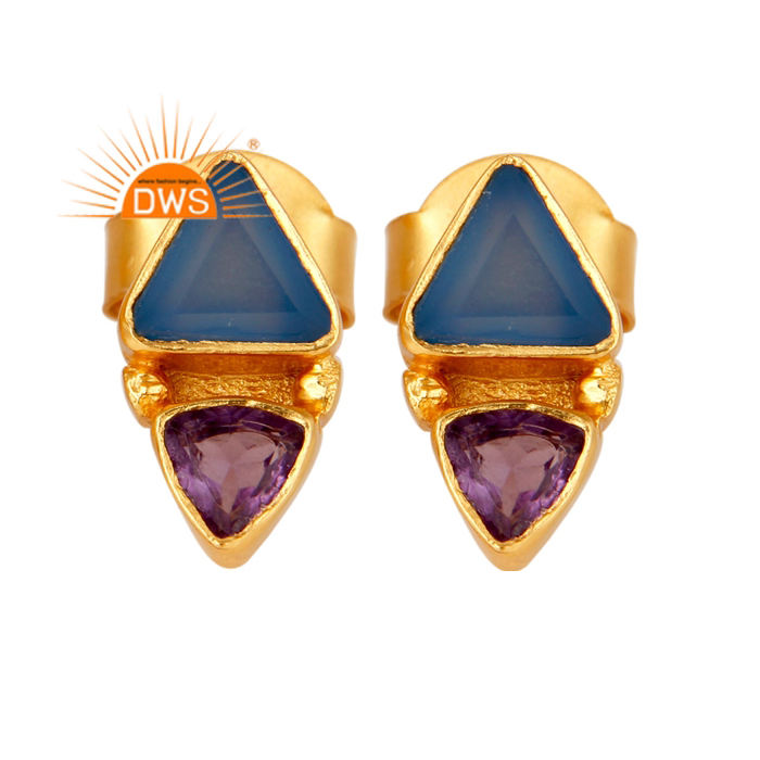 Dernière conception faite à la main améthyste naturelle et calcédoine bleue pierre précieuse boucle d'oreille bijoux de mode pour les femmes cadeau pour elle