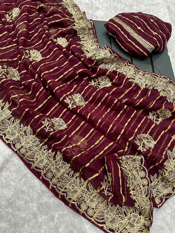 Dernière forte demande vêtements ethniques lourds en mousseline de soie lourde pure avec bordure en dentelle satinée Saree de Shree Indian Export Selling