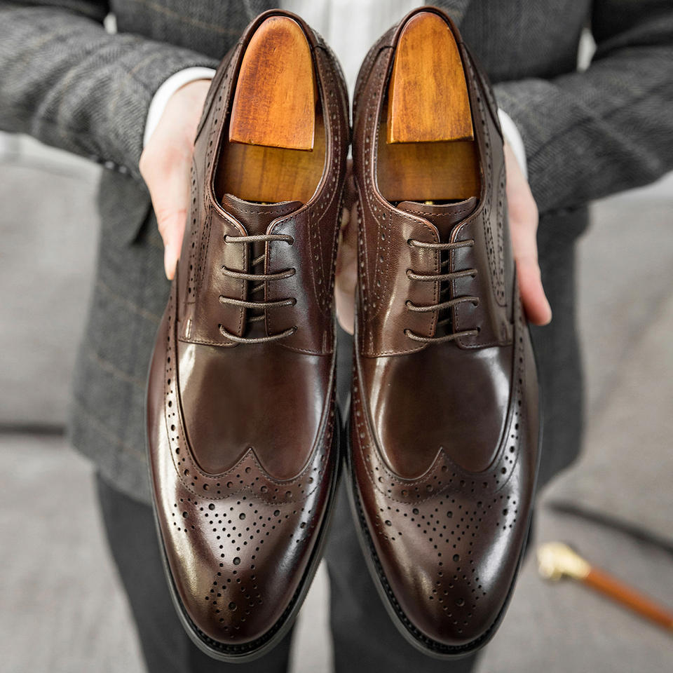 Nouvelles Chaussures Habillées en Cuir pour Hommes à Talons Hauts - Derby Anglais Traditionnel en Cuir Véritable Premium, Imperméables et Respirantes à Lacets