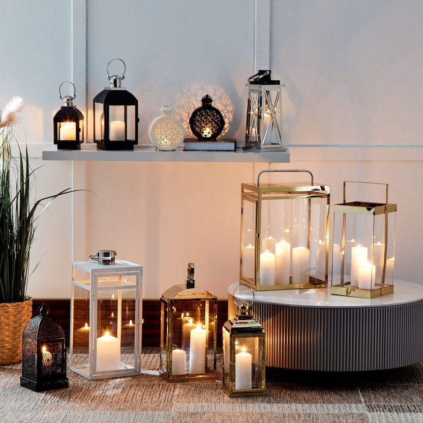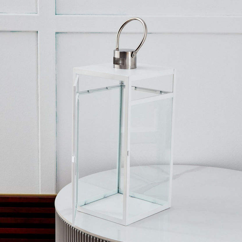 Dernières décorations pour la maison, lanterne porte-bougie en métal blanc avec dessus argenté, élégante lanterne de décoration de sol
