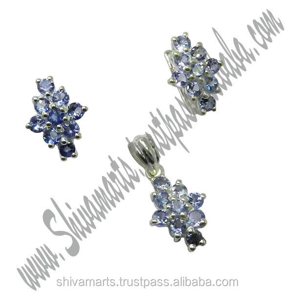 Dernière conception chaude tanzanite naturelle ensemble de boucles d'oreilles en argent sterling 925 bijoux pour femmes cadeau