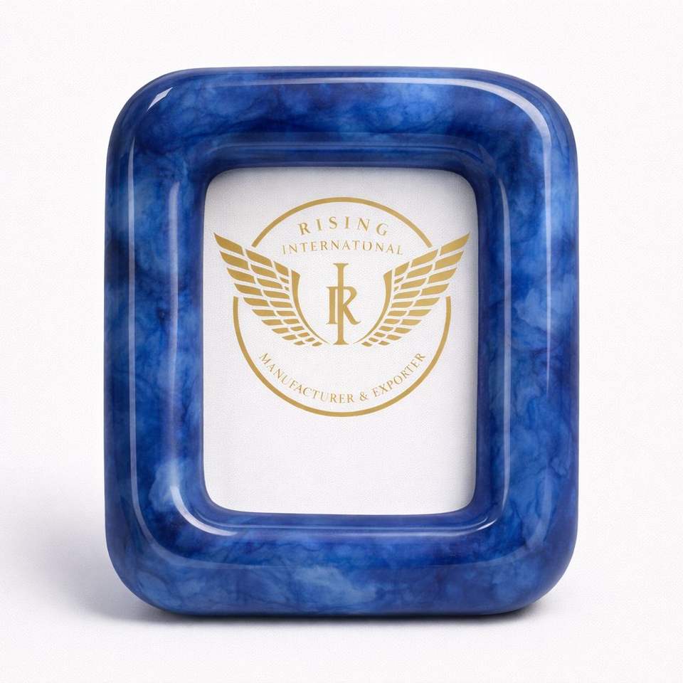 Dernier modèle très demandé : Fournisseur de cadres photo carrés en résine bleue personnalisés pour la décoration intérieure de luxe et les cadeaux personnalisés