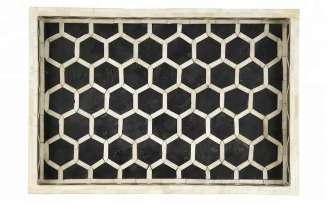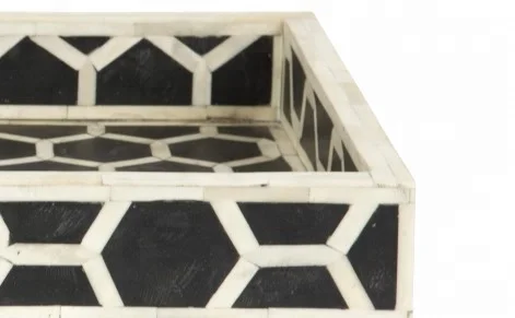 Latest Hottest Selling 2024 Black Rectangular Bone Inlay Resin Serving Tray Chocolate Serving Bone Inlay Tray by Royal Decor Mrt