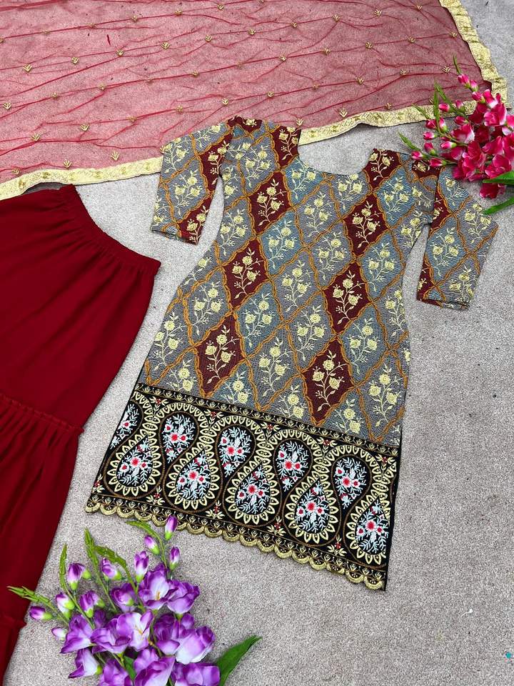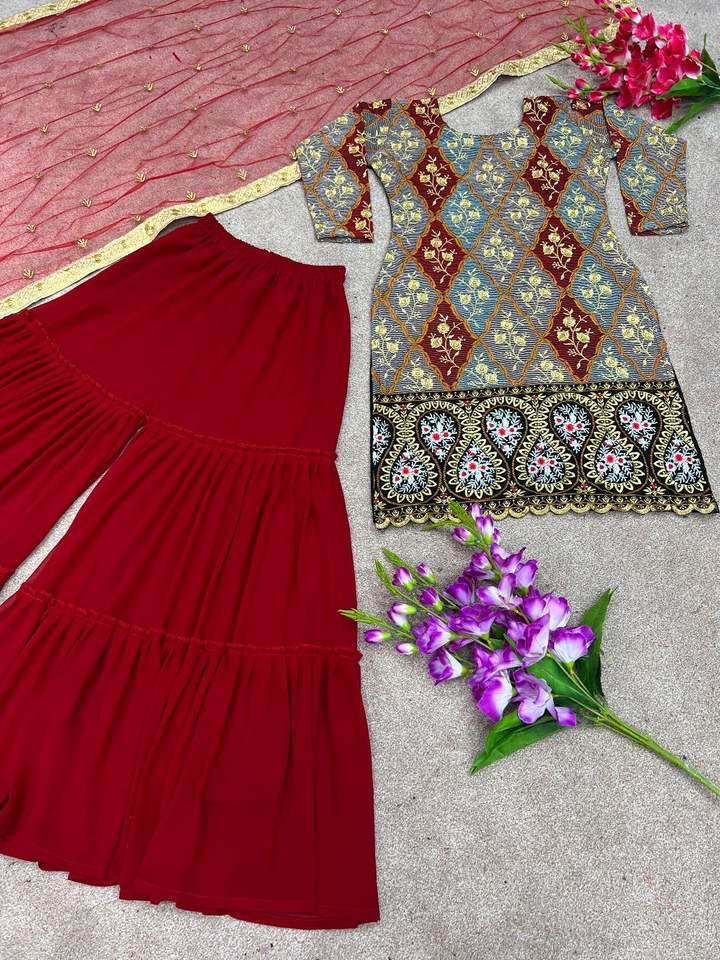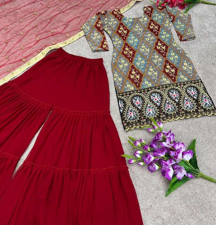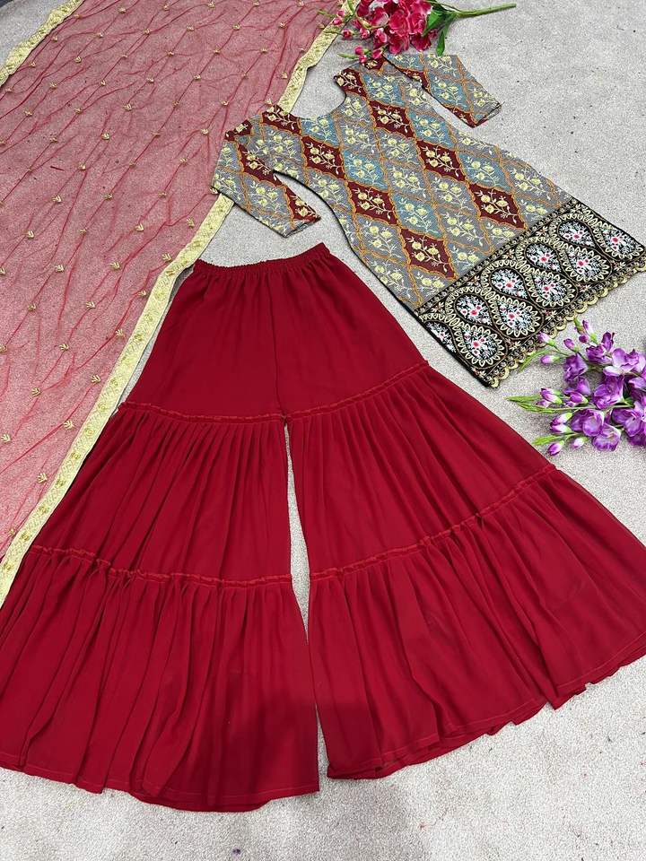 Product Name:Party Wear Look Top , Sharara Palazzo And Dupatta