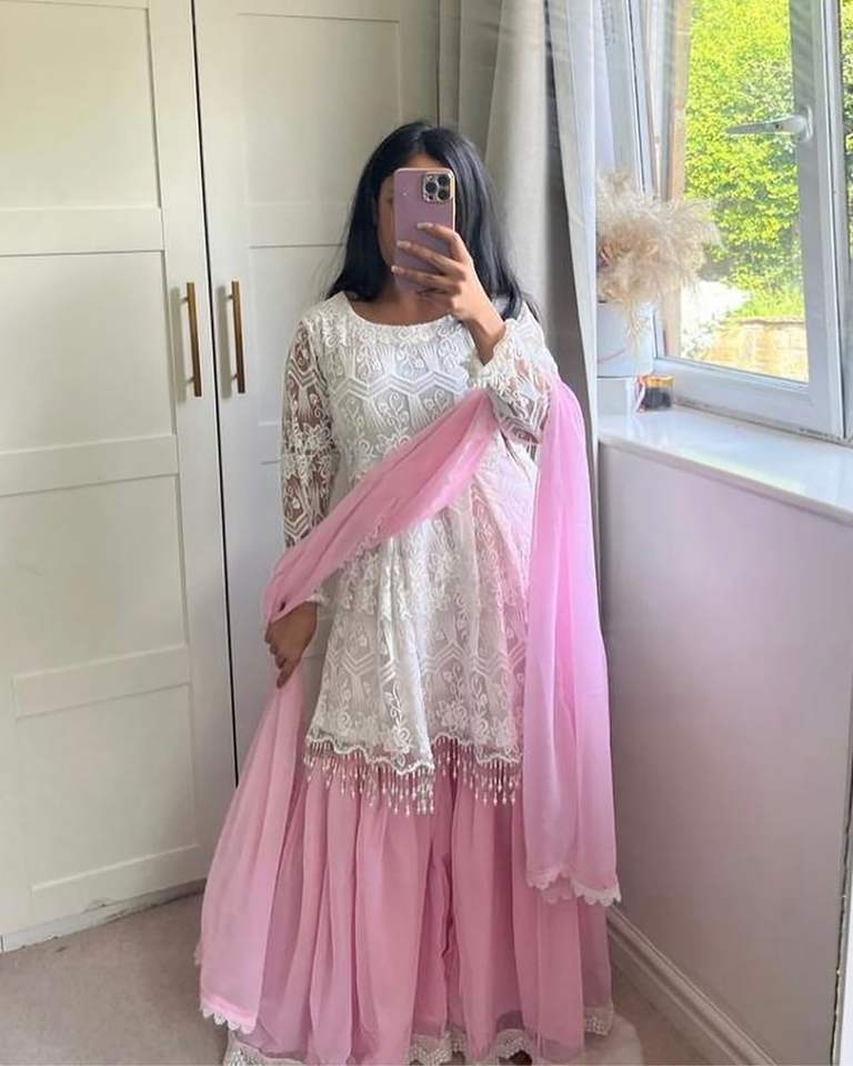 Latest Indian Embroidery Sharara Gharara Kurti Set, Georgette Fabric Gorgeous Pakistani Designer Customize Ethnic Wear
