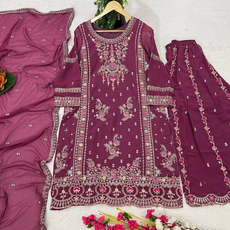PLAZZO WORK:Multi Needle Emb work With and 3mm Sequins Embroidery work.