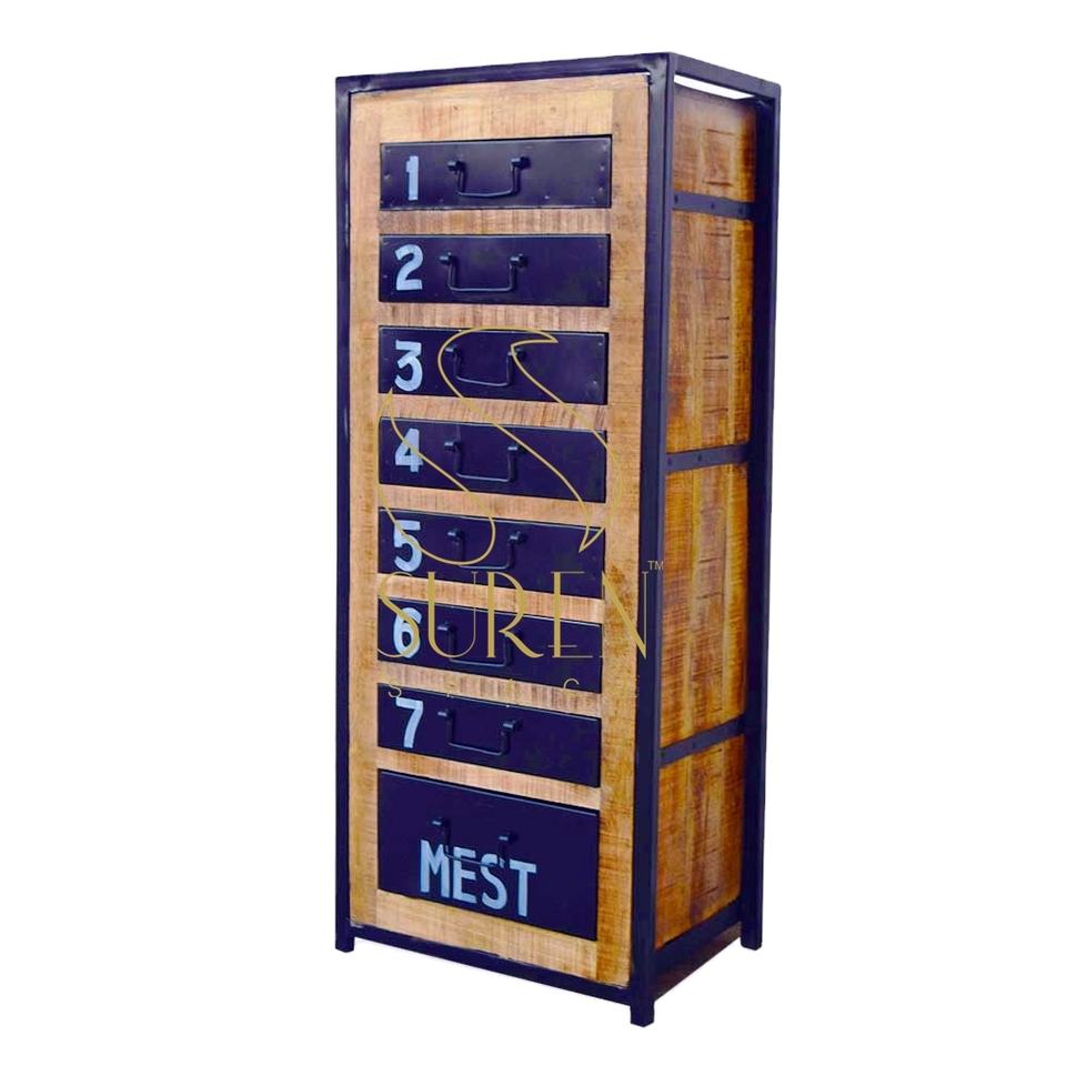 Nouvelle Commode Industrielle Artisanale en Bois Massif Noir, Design Unique Indien, pour Salon Suren Space