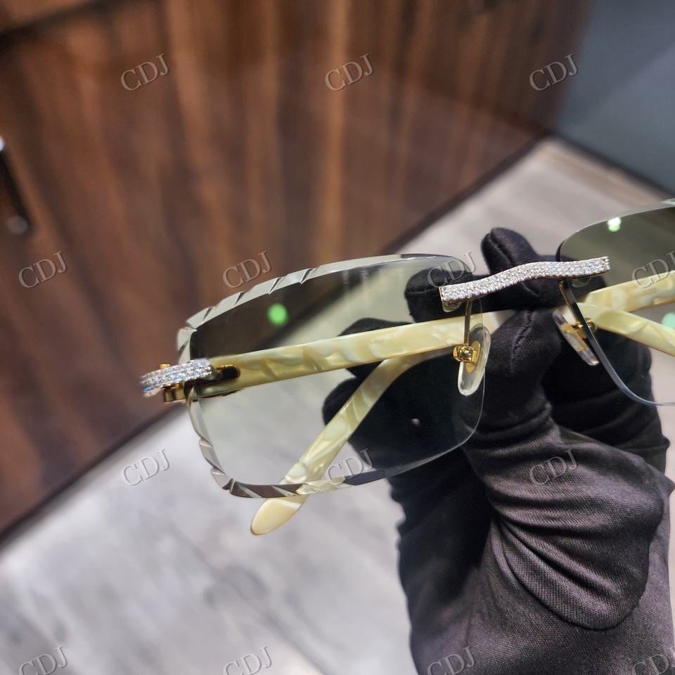 Derniers bijoux Verres verts Lunettes de soleil glacées à monture en acier inoxydable Moissanite personnalisées Prix de gros pour les fournisseurs