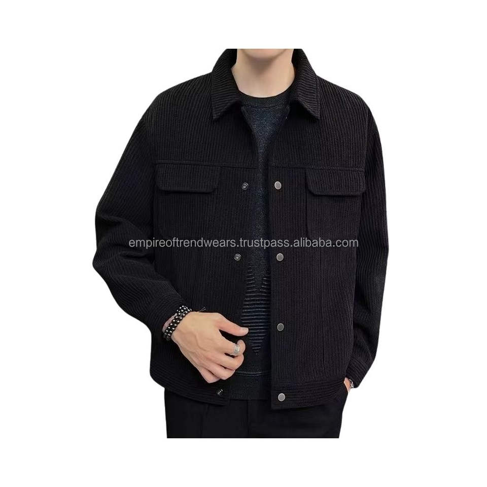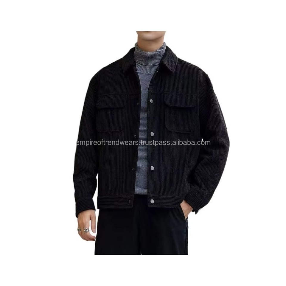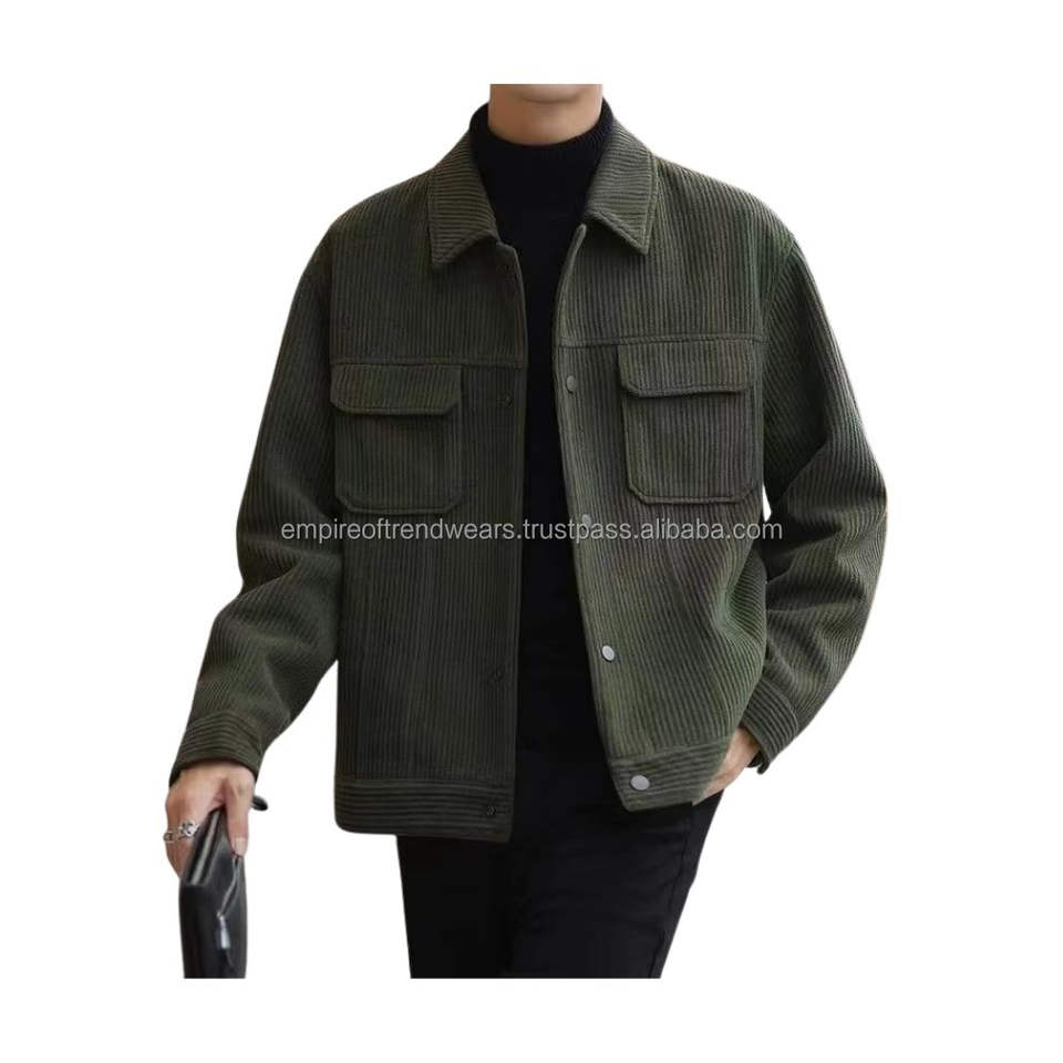 Latest Men's Casual Corduroy Ribbed Shacket Snap Button Over Shirt with Dual Flap Pockets Front Logo High Quality Grey