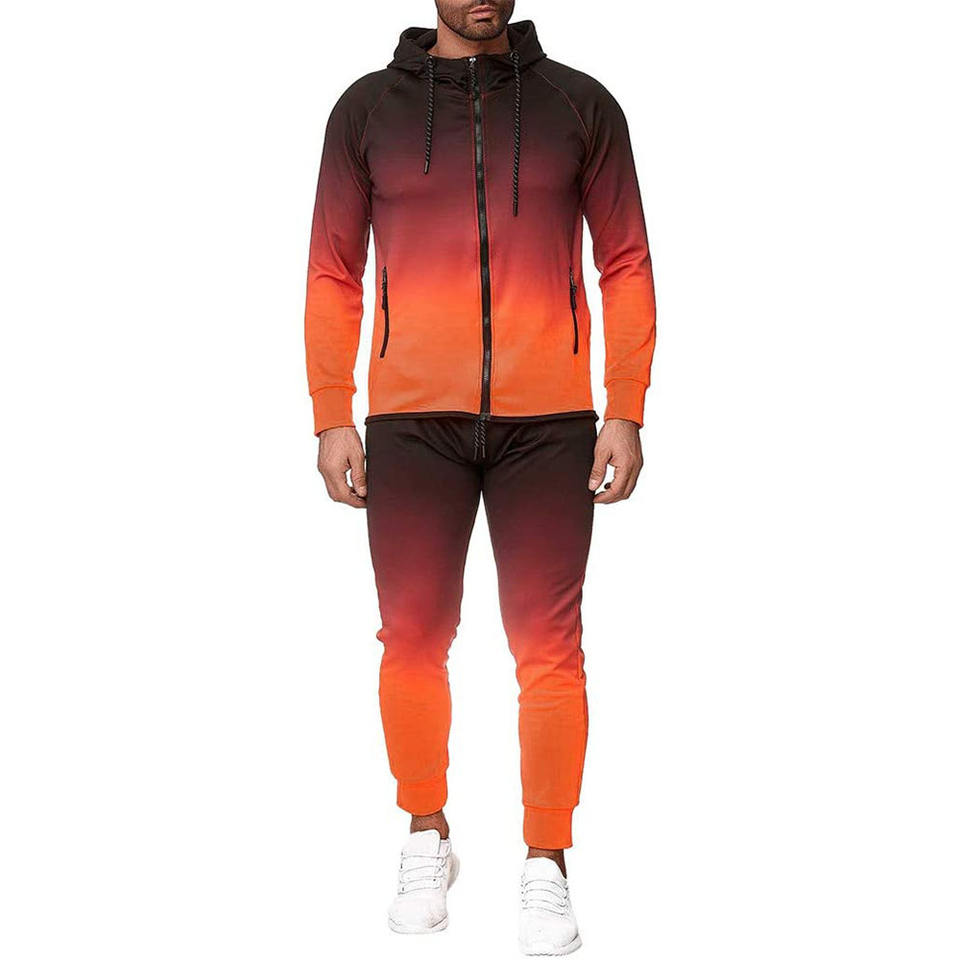 Derniers survêtements pour hommes à blocs de couleur avec col à capuche et fermeture éclair, ensemble de jogging tendance confortable et abordable en 2 pièces