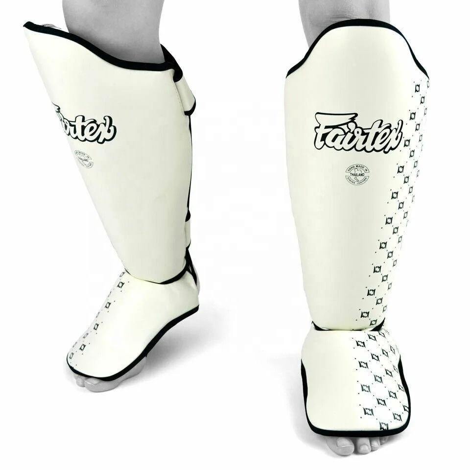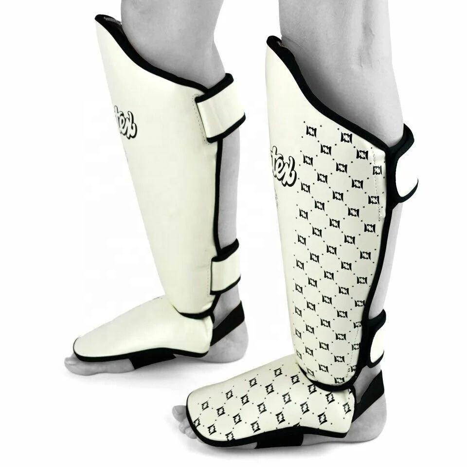 Dernier modèle Fairtex, protège-tibias en cuir véritable blanc MMA, équipement d'entraînement de kickboxing, protection pour Muay Thai et Taekwondo