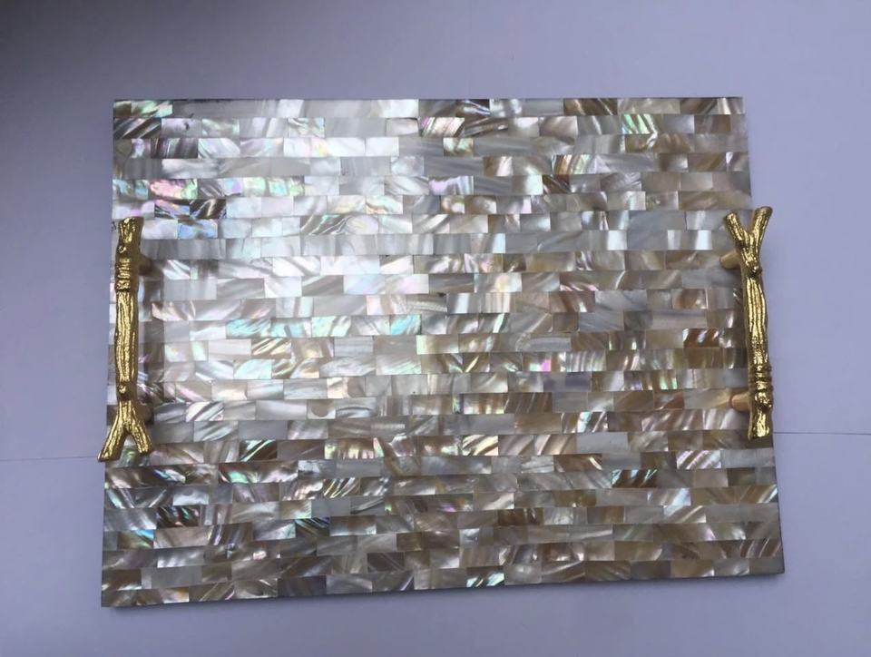 Nacre décorative incrustation plateau de service plateau de nourriture assiettes rectangulaires pour cuisine de luxe hôtel restaurant plateau utilisé