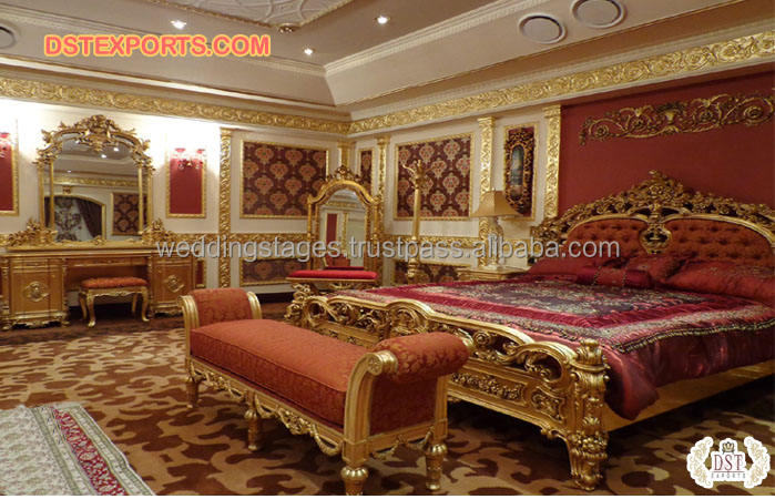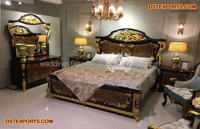Latest Modern Style Gold Finish Bed With NightstandProduct name