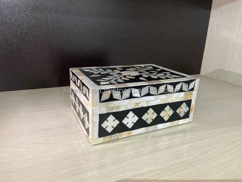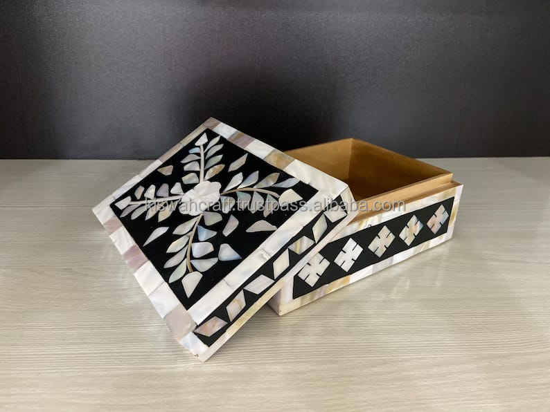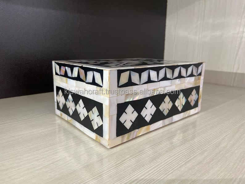 Dernière moderne Super MDF os incrustation Zigzag motif carré boîte à bijoux vente d'exportation et boutique utilisation avec emballage en carton